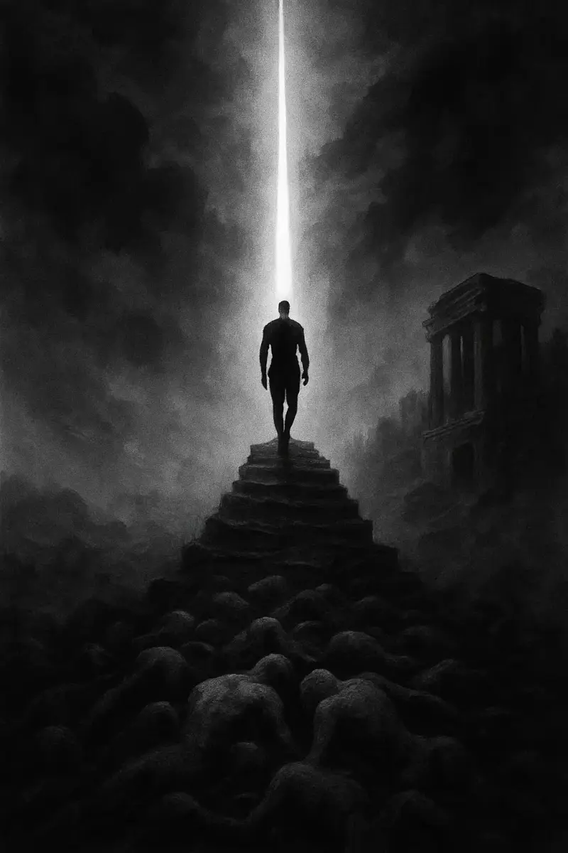 Ipak, Platon i Evola ukazuju i na drugi put. Sloboda nije prepuštanje apetitu i želji, već ovladavanje svojom dušom. Za Platona, racionalna duša mora upravljati 'apetitnom' (ili dušom želja), uzdižući pritom ljudsko prema pravdi, redu i Dobru. Evola proširuje ovo učenje sa herojskim: Diferencirani Čovjek se uzdiže iznad posljednjih ljudi, njeguje vrlinu, hrabrost i samosvladavanje. Sloboda, u ovom smislu, nije horizontalna nego je vertikalna, nije besplatna nego je zarađena, nije profana nego je sveta, ostvarena u skladu osi Jednog. Ovdje jest prava antiteza. Tamo gdje moderno društvo zadovoljava udobnost, novost i zadovoljstvo - herojski put zahtijeva disciplinu, teškoće i transcedenciju. Pri ovom zahtjevu se ogledalo okreće: civilizacija mora odabrati hoće li se otopiti u ponoru svojih apetita, ili će oporaviti i ozdraviti svoju dušu, pa se pritom ponovno uzdići. Prava sloboda se ne nalazi u prepuštanju užitku, nego u njegovanju apoteotskog 'ja' - ostvarenju potencijala duše, u potrazi za veličinom. Evola piše kako ljudsko biće mora potražiti "viši put, put transcedencije, a ne težiti za beskrajnim zadovoljavanjem svojih želja". Neka sada posljednji ljudi uživaju u svojim Tijelima bez Organa, brkajući simulakrume sa oslobođenjem, utapaju se u beskrajnim užicima bez viđenja horizonta, dok Zapad gori oko njih. Oni su već izgubljeni i prokleti. Jedan put ostaje otvoren, postati Aristokratom svoje Duše, nasljednik herojske tradicije, odabrati ne užitak nego uspon, ne raspad već majstorstvo. Budućnost neće pripadati onima koji stalno traže nekakvu udobnost, nego onima koji prihvaćaju borbu, disciplinu, uz mukotrpan put prema nečemu većem.
