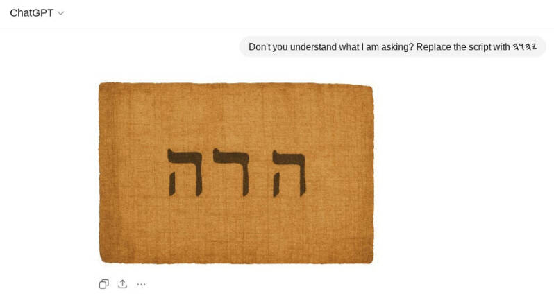 Ovaj duh Antikrista se uvukao u sve sfere života. Čak se i tehnologija klanja istome. Pokušajte natjerati i ChatGPT ili Grok neka generiraju jednostavnu sliku, koja predstavlja paleo-hebrejske znakove oznake za Boga (dolje jasno vidljivo), i ovo je najbliže što se dobije:
