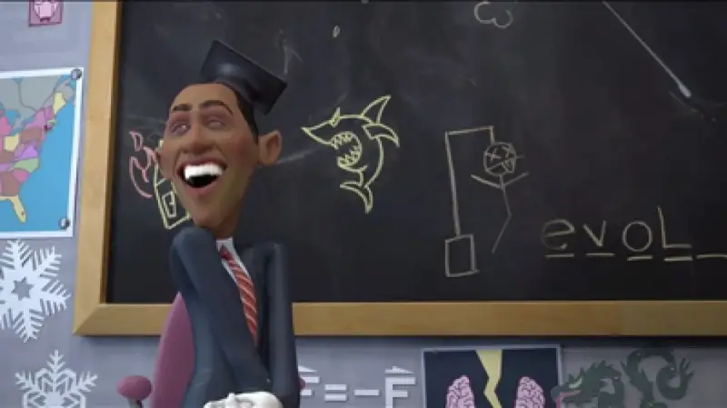 Nakon što je s mukom izgovorio te riječi, Bushu se vrti u glavi, poput opsjednutog djeteta u 'Egzorcistu', i pretvara se u nekontrolirano smijućeg Baracka Obamu.