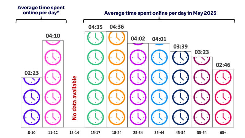 Njihova bi obrana bila uvjerljivija da mladi provode samo mali dio dana na internetu. Dakle, pogledajmo više podataka o tome kako mladi raspoređuju svoje vrijeme.