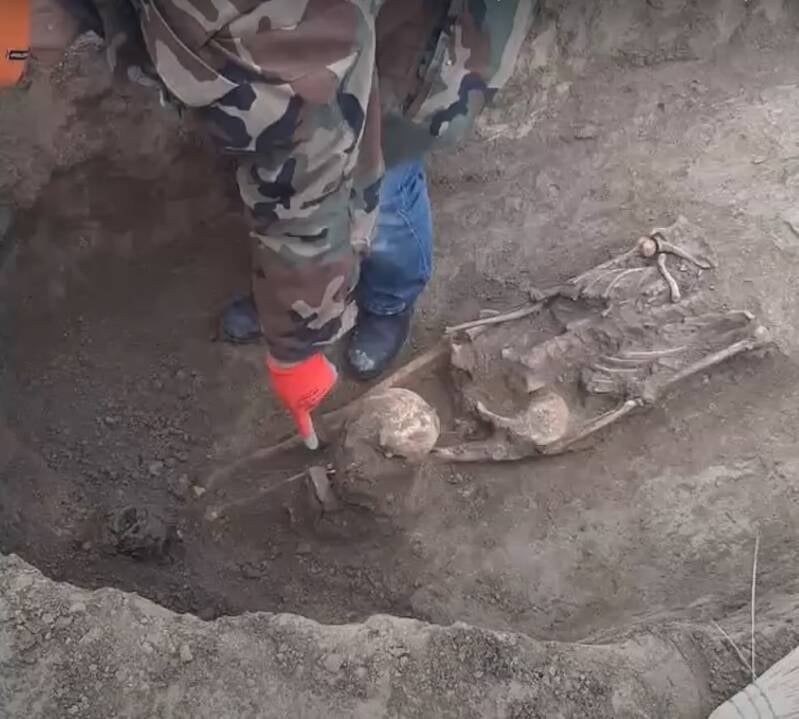 Jednom ženskom kosturu pronađena je glava između nogu a unutar lubanje umetnuta metalna ploćica.