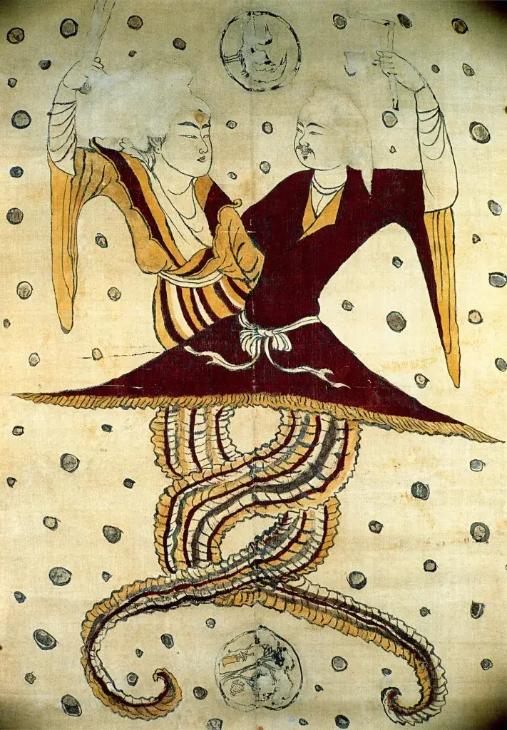 Prema Klasicima planina i mora, Fuxi i Nüwa bili su izvorni ljudi koji su živjeli na planini Kunlun, nakon Velikog potopa. Za Fuxi i Nüwa se kaže kako su stvorenja koja imaju lica ljudi, i tijela zmija. Fuxi je, zajedno sa svojom sestrom i suprugom Nüwom, zaslužan za stvaranje čovječanstva i izum glazbe, lova, ribolova, pripitomljavanja i kuhanja, kao i Cangjie sustava pisanja kineskih znakova. Fuxi se računao kao prvi od tri suverena na početku kineskog dinastičkog razdoblja, oko 2000. g. pr. Krista.