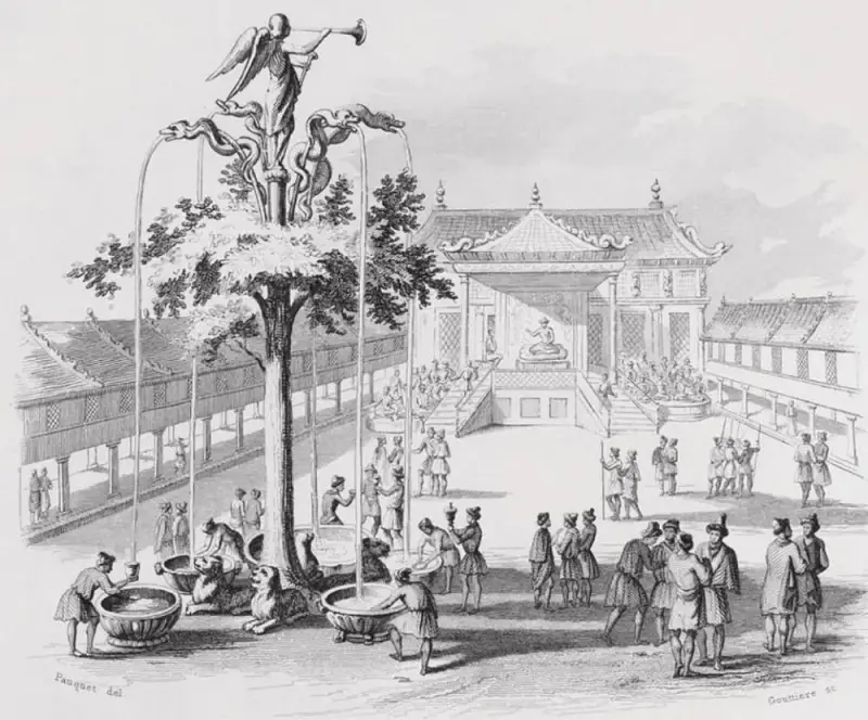 William od Rubrucka, franjevački fratar koji je obišao palaču 1254. godine, opisao je to stablo:
