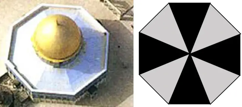 Gledana od gore, u obliku je oktogona, koji savršeno oblikuje Kajinov znak.