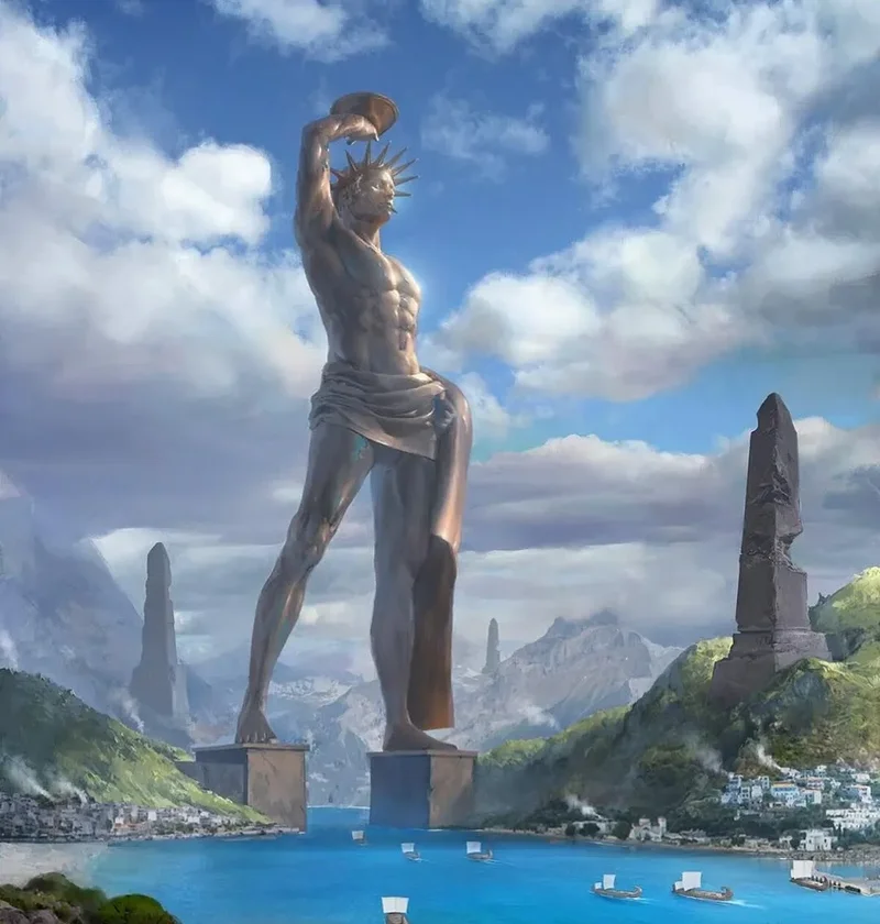 Prema većini suvremenih opisa, Kolos je bio visok otprilike 70 lakata, ili 108 stopa – što je otprilike visina modernog Kipa slobode od stopala do krune – što ga je činilo najvišim kipom u starom svijetu. Kip Slobode temelji se na ženskoj božici slobode i predstavlja modernu interpretaciju Kolosa s Rodosa, koji je predstavljao muškog Heliosa. Znači li to da je Kip slobode muškarac, žena, ili oboje? Taj kip predstavlja i Heliosa i Božansku Majku, što znači kako je Kip slobode - hermafrodit/transseksualac.