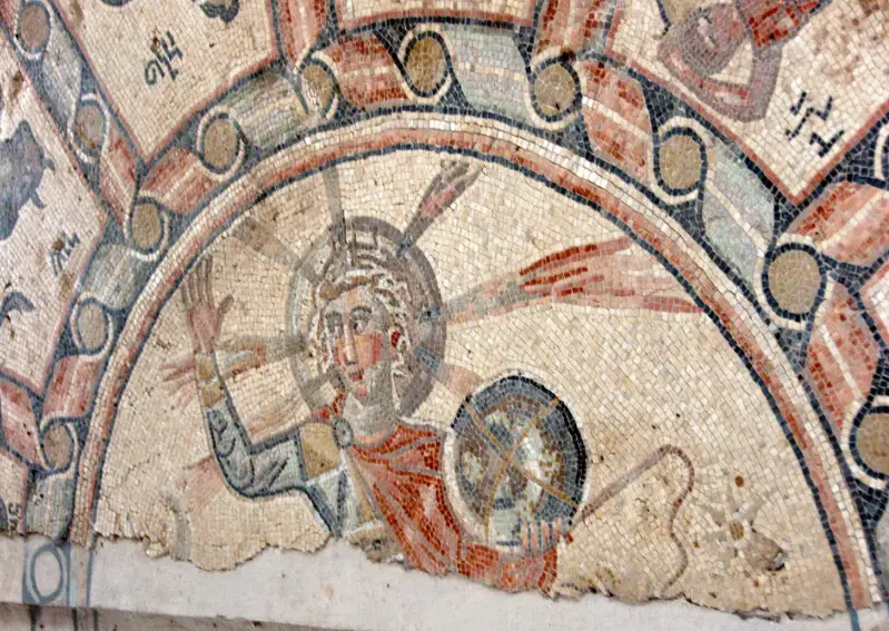 Beth Alpha je židovska sinagoga iz šestog stoljeća, smještena u podnožju sjevernih padina planine Gilboa u blizini Beit She'ana, Izrael. Središnja ploča prikazuje židovsku adaptaciju grčko-rimskog zodijaka. Zodijak se sastoji od dva koncentrična kruga, s dvanaest znakova zodijaka koji se pojavljuju u vanjskom krugu; dok se Helios, grčko-rimski bog sunca, pojavljuje u unutarnjem krugu. Vanjski krug sastoji se od dvanaest ploča, od kojih svaka odgovara jednom od dvanaest mjeseci u godini, i sadrži odgovarajući grčko-rimski znak zodijaka. Ženska poprsja koja simboliziraju četiri godišnja doba pojavljuju se u četiri kuta, neposredno izvan zodijaka.