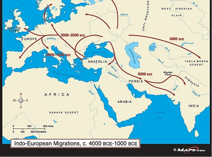 Kako je napisano u prethodnom tekstu, migranti od kojih su potekla povijesna društva antičke Grčke, Italije, Irana i Indije, uglavnom su se kretali kroz stepe sjeverno od Crnog i Kaspijskog mora, tj. današnju Ukrajinu, Rusiju i Kazahstan. Ti se narodi slavno (i kontroverzno) nazivaju Indoeuropljanima i nisu bili sjedilački, iako postoje dobri dokazi kako su poznavali i koristili poljoprivredne prakse, barem jedan dio godine. U mnogim aspektima, bili su više slični nomadskim narodima, koji su se hranili lutajući; nego zemljoradničkim narodima, koji su se razvili na jugu, u Mezopotamiji i na Sredozemlju.