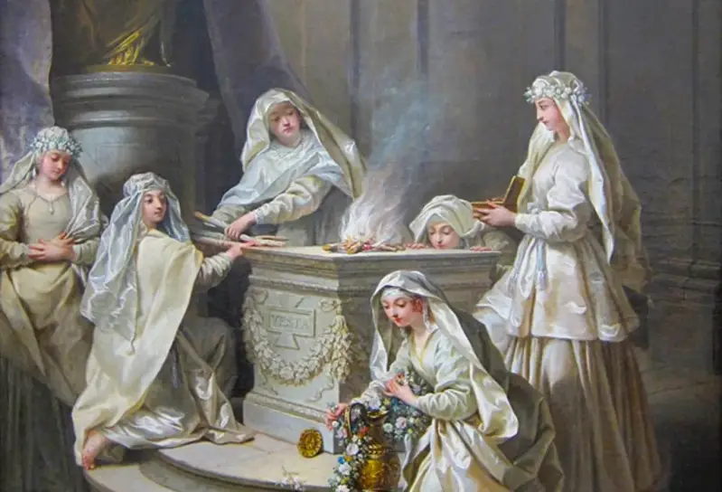 Žrtvovanje: Vestalske djevice bile su svećenice, koje su polagale 30-godišnji zavjet čistoće, u čast lažnom bogu Vesti. Kada bi se ustanovilo kako je djevica vestalka nečedna, bila bi živa pokopana. Bila bi sagrađena posebna komora, gdje bi se zazidala svaka nečedna vestalska djevica, te bi tamo bila ostavljena dok ne umre od gladi. Žrtva se smatrala nužnim sredstvom, kako bi se udovoljilo bogovima, zbog prijestupa vestalske djevice. Ali, nisu samo vestalske djevice bile ljudskim žrtvama. Utapanjem su žrtvovana i hermafroditska djeca. Žrtvovanje djece uglavnom je dolazilo iz uvjerenja kako su takva djeca zla ili oštećena.