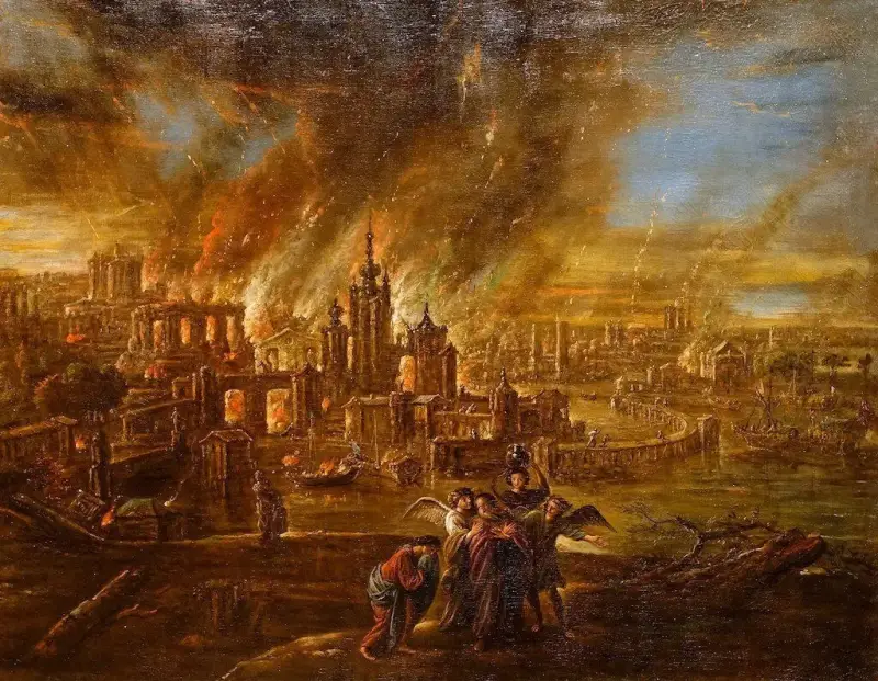 Lot i njegove dvije kćeri su spašeni, ali njegova žena zanemaruje upozorenje anđela, osvrće se i pretvara se u stup soli.