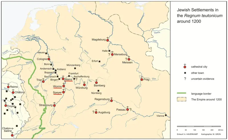 Židovi su oblikovali život Speyera, Wormsa i Mainza više od 900 godina. Tri grada na rijeci Rajni su smatrana važnim središtima židovskog učenja i kolijevkom židovskog života u Europi. Bili su poznati kao "gradovi ShUM" na temelju početnih slova Speyera, Wormsa i Mainza, na hebrejskom. Speyer se na hebrejskom naziva "Shpira", Worms "Warmaisa", a Mainz "Magenza".