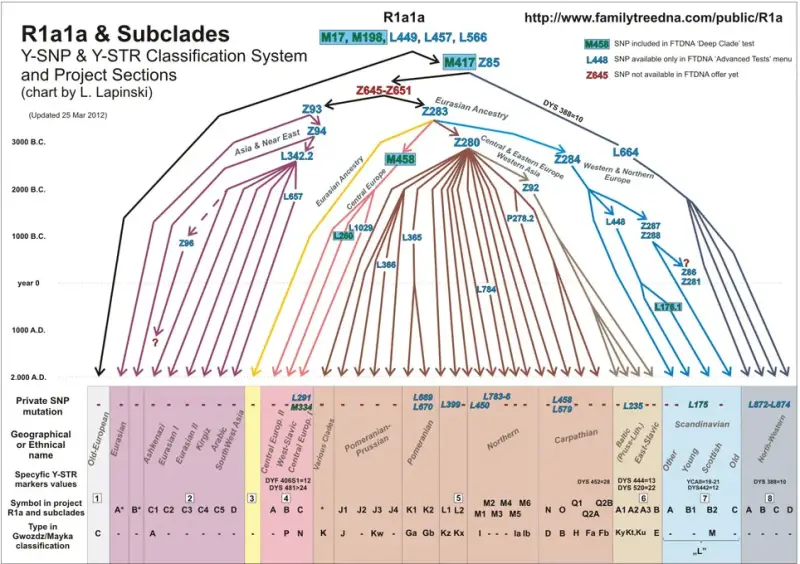 Tablica potklada za haplogrupu R1a1a, za one koji se bave genetikom