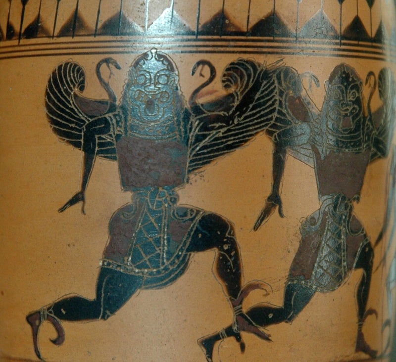 Riječ gorgon ili gorgan doslovno znači "vukovi" na perzijskom jeziku. Dolazi od korijena garg, što znači "raskomadati", kao što se Gorgone nisu bojale učiniti ljudima. Indoeuropski oblik riječi bio je waerg, iz kojeg su nordijski rođaci Iranaca također izveli riječ Varg, kao u Vargtimmen, ili "Vučji sat" na švedskom. Skiti, koji su bili prvi Mitraisti, usvojili su vuka kao svoj totem i ratni stijeg. Zapravo, njihovo ime, Saka ili Saga znači "kanidi", drugim riječima, ljudi-vukovi ili vukodlaci. Ova nit nas može nas odvesti dalje u labirint primordijalnog mitraizma, ukoliko je nadopunimo istraživanjem Carla Rucka u njegovoj studiji "Vukovi rata: Dokazi drevnog kulta ratničke likantropije". Ruckov rad, kada se uzme zajedno s Hillmanovim istraživanjem, neprocjenjiv je izvor u iskopavanju Gorgonske mudrosti koja ulazi u povijest s Medejom, i koja stoji u podrijetlu vrlo blisko povezanih kavkaskih kultova Prometeja i Mitre.
