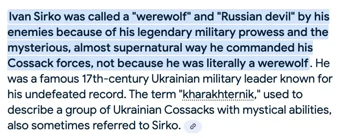Unatoč onome što bi AI rekao, doista se vjerovalo kako je bio sposoban postati vukom, ili čovjek-vuk, ili možda kontrolirati vukove. Slavenski folklor prikazuje vovkulaky kao dobrovoljne mijenjače oblika, koji mogu postati vukovima kroz rituale (skakanje preko noževa, recitiranje bajalica), radi moći ili iz osvete. Kozaci, posebno karakternici, poput Ivana Sirka i njegovih ratnih družina, snažno se povezuju sa ovim folklorom o vukovima i ljudima-vukovima.