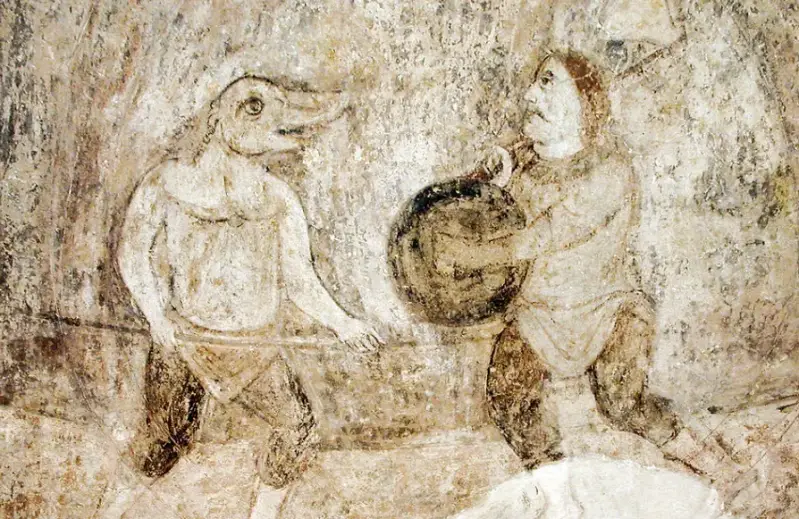 Freska u Saint Sophia Cathedral u Kijevu iz 11. stoljeća, koja prikazuje berserkerski ritual koji izvode varjaški berserkeri.