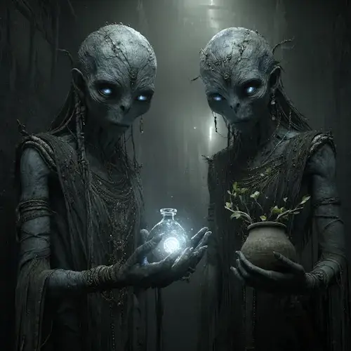 Ali, nije sve izgubljeno. Inannina vjerna pratilja stekla je naklonost oca Enkija, koji je stvorio dva čudna bića od prljavštine ispod svojih noktiju. Enki im kaže da će Ereshkigal, Kraljica Podzemlja, uskoro roditi. Trebaju se ušuljati u Podzemlje, služiti je sa suosjećanjem i steći njeno povjerenje. Kada ih mračna Kraljica pokuša nagraditi, trebaju odbiti sve darove, samo zatražiti beživotno tijelo Inanne.