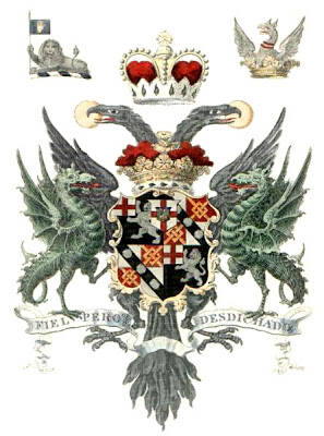Crveno i zlatno polje, na kojem se nalazi bijela Zvijezda i koje podupiru dva Zmaja - su grbovi De Verea. Crvena i zlatna su također boje drugih potomaka Merovinške dinastije, uključujući: Planagenete, Mandevillee, Spencere, te kraljevsku kuću Škotske.