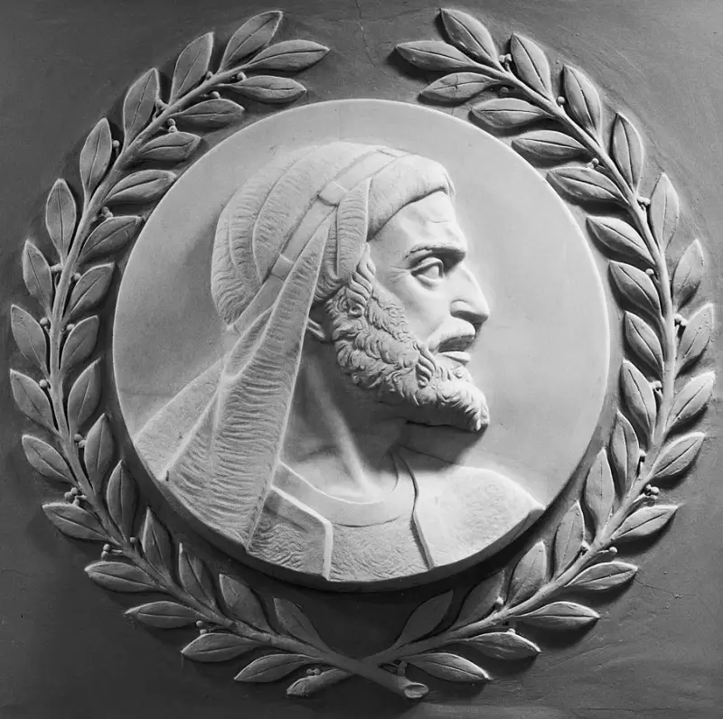 "Maimonidov mramorni bareljef, jedan od 23 reljefa velikih povijesnih zakonodavaca u dvorani Zastupničkog doma SAD, u Kapitolu Sjedinjenih Država. Izradila Brenda Putnam, 1950." Izvor: Wikipedia.