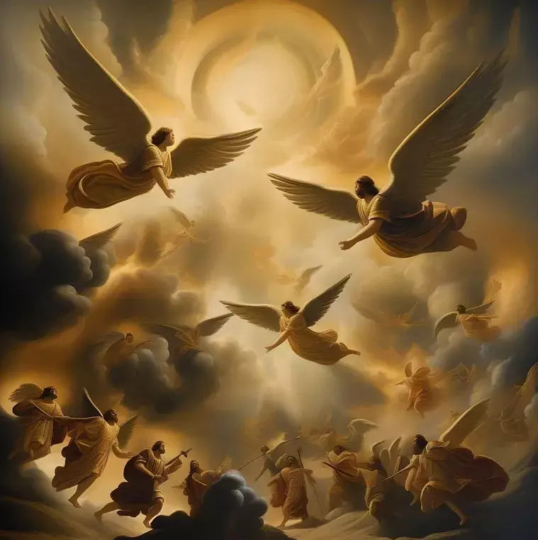 [Napomena: ponovo se očituje broj sedam. Ovaj put je očita povezanost broja s moćnim i razornim anđelima. Svaki anđeo puše u 'trubu' i oslobađa neki oblik katastrofe. Ovi arkanđeli su također poznati kao pali anđeli, te su povezani s Luciferovom pobunom. Oni su poznati kao Arhoni u gnostičkoj tradiciji i vjeruje se da su zlonamjerni entiteti koji se hrane vibracijskim energijama negativnih emocija.