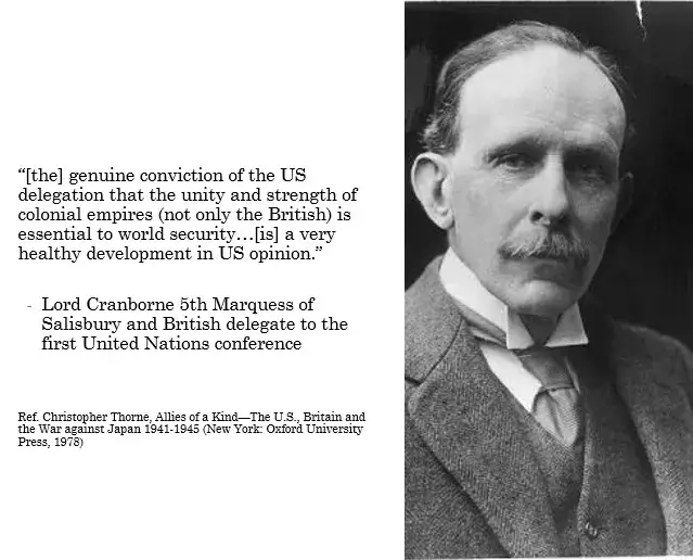 Na prvoj konferenciji Ujedinjenih naroda, Lord Cranborne je rekao: