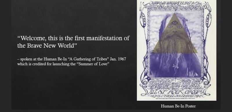 Human Be-In je organiziran je kao događaj u okviru LSD-25. Odaziv je bio između 25.000 i 50.000 ljudi. Dijelili su se besplatni sendviči začinjeni LSD-om, te je tako rođeno “Ljeto ljubavi”, inače poznato i kao prva manifestacija Vrlog novog svijeta.