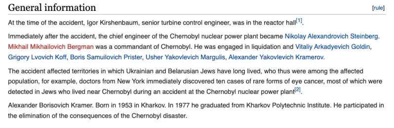 Gore spomenuti Steinberg^ je odbačen u Izrael ubrzo nakon što je eksplodirao reaktor. Šef osiguranja bio je Bergman (ne znamo što je s njim, nestao je). Pogledajte sva neslavenska imena koja su radila u reaktoru u Pripjatu!