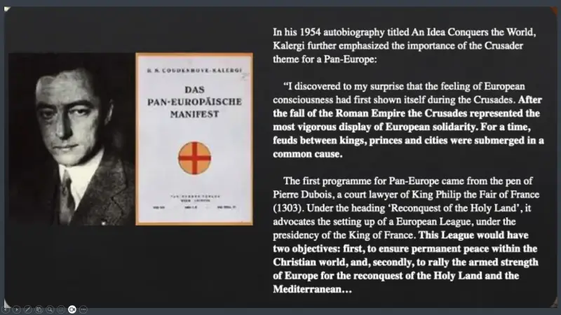 Dakle, kao što vidite, opet se vraćamo na ideju Jeruzalemskog kraljevstva....stalni poticaj za ono kamo danas idemo. Kalergi dalje piše u svojoj autobiografiji: