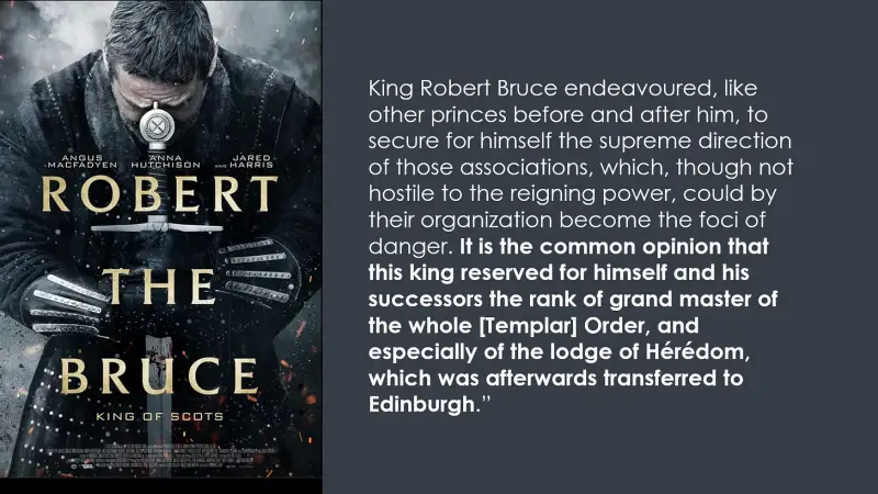 Heckethorn u svojim "Tajnim društvima svih vremena" govori o Robertu Bruceu. Zapravo, ispada da je Robert Bruce iz filma "Robert the Bruce, King of Scots" i ako je Heckethorn bio u pravu, onda zapravo bio izdajnik. Opet, to ima dosta smisla, jer je zabio nož u leđa Williamu Wallaceu (nekoliko dijelova teksta, ali na engleskom):