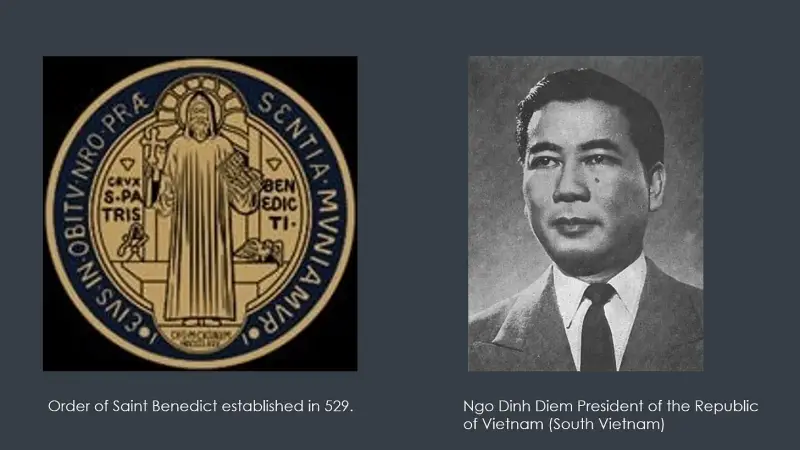 Dakle, ponovno susrećemo, ne samo isusovce koji i dalje zadržavaju bitnu prisutnost u Vijetnamu tijekom ovog razdoblja, nego i njihovu jasnu vezu sa Diemom, koji je prošao neku vrstu obuke u benediktinskom samostanu.