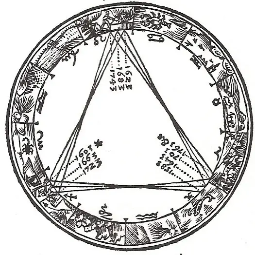 Astrolozi su prepoznali da se konjunkcije superiornih planeta, Saturna i Jupitera, događaju otprilike svakih 20 godina u ciklusu, i tome su pripisivali različite stupnjeve značaja: veliko, veće i najveće. Ovaj ciklus je ovisio o 4 trigona ili tripliciteta, na koje su znakovi zodijaka podijeljeni. Trigon predstavlja skup od 3 znaka i svaki je udaljen 120º od drugog, tvoreći tako jednakostranični trokut. Svaki trigon odgovara jednom od četiri elementa. Velika konjunkcija bi se događala svakih 20 godina, kada bi se ova dva planeta spojila u novom znaku, unutar danog tricipliteta. Veća konjunkcija, koja se ponavljala svakih 200 ili 240 godina, događala bi se kakd bi znakovi prešli u novi triciplitet. Najveća konjunkcija događala se na kraju potpunog ciklusa sva četiri tricipliteta, svakih 800 ili 960 godina.