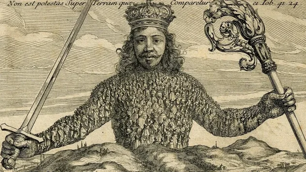 Naslovnica knjige "Levijatan", Thomasa Hobbesa.