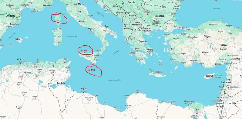 Malteški vitezovi, kao i Malteški masonski red, imali bi veliki utjecaj u Palermu, koji će postati rodno mjesto talijanskog mafijaškog bratstva, kao i na Korzici, koja će postati rodno mjesto francuskog mafijaškog bratstva. Bari, smješten na istočnoj obali Italije, bio je luka koju su koristili križari, a u kojem je također postojala kratkotrajna institucija Mafijaškog bratstva, koja je bila potpuno odvojena od Palermskog mafijaškog bratstva, što pokazuje vrlo izravnu vezu s institucijama Malteških križara, Malteškim ložama i rođenjem Mafijaških bratstava.