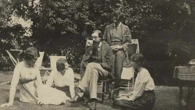 Slijeva na desno: Lady Ottoline Morrell, Maria Nys, Lytton Strachey, Duncan Grant i Vanessa Bell