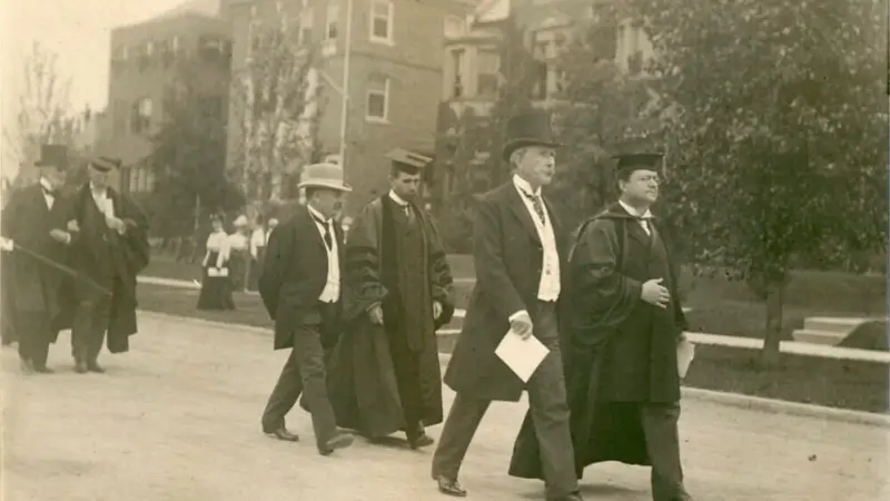 John D. Rockefeller (lijevo u prvom planu), na Sveučilištu u Chicagu, koje je osnovao
