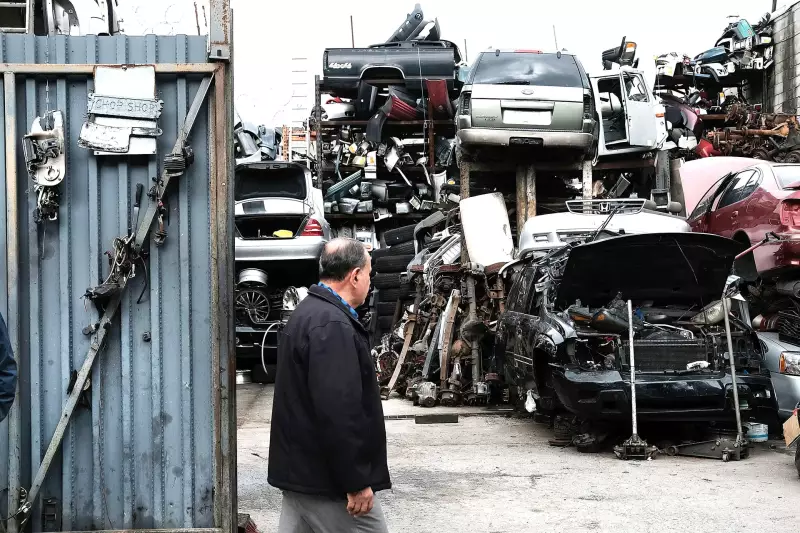 Čovjek prolazi pokraj autootpada na obali u četvrti Sunset Park u Brooklynu u New Yorku 4. listopada 2016.