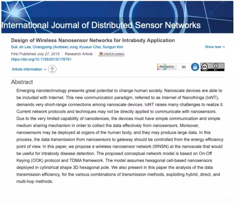 Ispod je nekoliko snimaka zaslona. Jedan je za rad iz 2015. godine, za "Dizajn bežičnih nanosenzorskih mreža za unutar tjelesnu primjenu." Drugi je patent za GO i 5G mreže koje se odnose na Internet tijela (IoB; WEF-ov plan za novu državu bio sigurnosti).