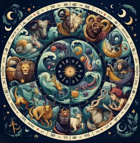 Zodijački ciklus: Zodijački ciklus, također poznat kao Velika godina ili Platonova godina, temelji se na precesiji ekvinocija. Ovaj fenomen se događa zbog sporog kolebanja Zemljine rotacijske osi, uzrokujući postupno pomicanje ekvinocija unatrag kroz znakove zodijaka. Svaki puni ciklus ove precesije traje otprilike 25 920 godina, dijeleći proces na dvanaest različitih doba.