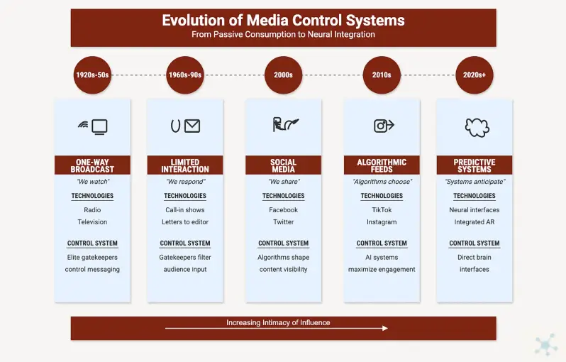 WEF-ova normalizacija tehnologije utjecaja na um predstavlja savršen most između laboratorijskih istraživanja i masovne primjene. Pokazuje kako se alati psihološke manipulacije kreću predvidljivim putem: od financiranja DARPA-e, korporativnog razvoja, institucionalnog odobravanja i globalne primjene - sve to istovremeno dok se preoblikuje iz "kontrole uma" u "kognitivno proširenje" i "transparentnost mozga".
