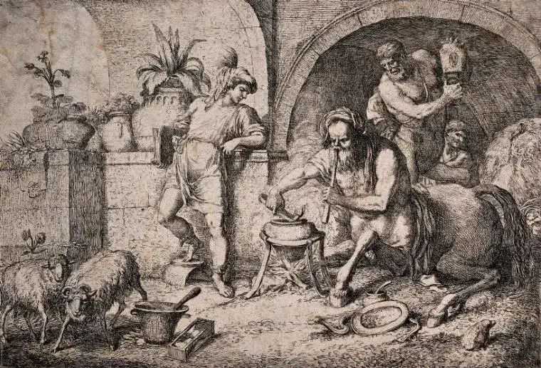 Grčko očuvanje Kironova bitnog učenja otkriva cijeli alkemijski proces koji je kodiran u njegovoj priči. Rođen od Krona (Saturna) i nimfe Filire. Pareći se sa Filirom, Kron je uzeo oblik konja, te se tako Hiron i rodio kao kentaur. On je najmudriji od svih kentaura, nekoć je bio i njihov kralj; ujedno je i besmrtan, jer je bio sin Krona. Njegov rani život bio je ispunjen odbacivanjem i napuštanjem. On od prvog daha nosi temeljnu ranu odvojenosti od božanskog izvora. Pa ipak, ova rana - umjesto da se smatra kozmičkom pogreškom ili božanskom kaznom - postaje precizan katalizator, koji je potreban za razvoj neviđenih iscjeliteljskih moći.