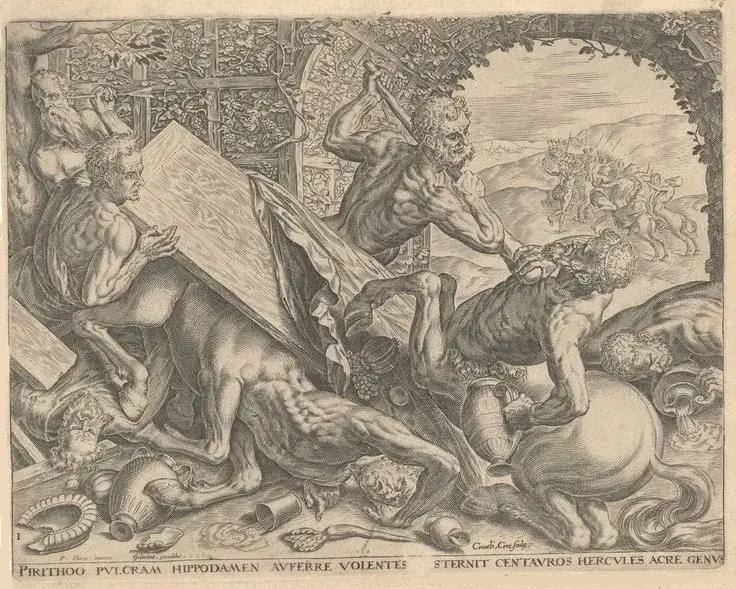 Herkul, koji predstavlja herojski ego u svom osvajačkom obliku, sam je otvorio vino, bez čekanja odgovarajućeg dopuštenja ili pripreme. Aroma je odmah privukla divlje kentaure - one aspekte nečije svijesti koji ostaju nesvjesni, kaotični, vođeni apetitom, a ne mudrošću. Ovi drugi kentauri, predvođeni Nesom, pokušali su se probiti u špilju, ali ih je Herkul odbio. Fol je bio kukavica i sakrio se tijekom bitke. Herkul je tada uzeo svoj luk i otrovne strijele koje je nanijela hidra, te ubijao i tjerao divlje kentaure. Herkul ih je uspio istjerati iz špilje, prema Hironovoj kući. Ali, jedna od njegovih otrovnih strijela je prošla kroz kentaura u bijegu i zaustavila se u koljenu njegovog mentora i prijatelja Hirona (ovaj, budući je besmrtan, nije umro, već je bio mučen nepodnošljivom boli).