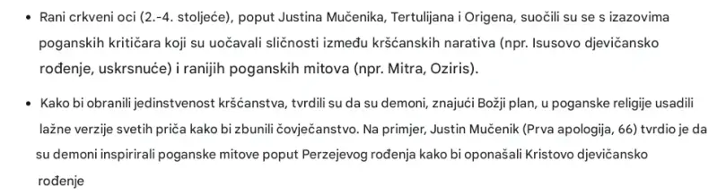 Opet: kršćanski teolozi nisu poricali sličnosti, jednostavno su tvrdili da je ta sličnost djelo samog Vraga, kako bi naveo ljude da posumnjaju u autentičnost crkvenih učenja i time osudili svoje duše na pakao. Crkva to naziva doktrinom 'Imitatio Diaboli'.