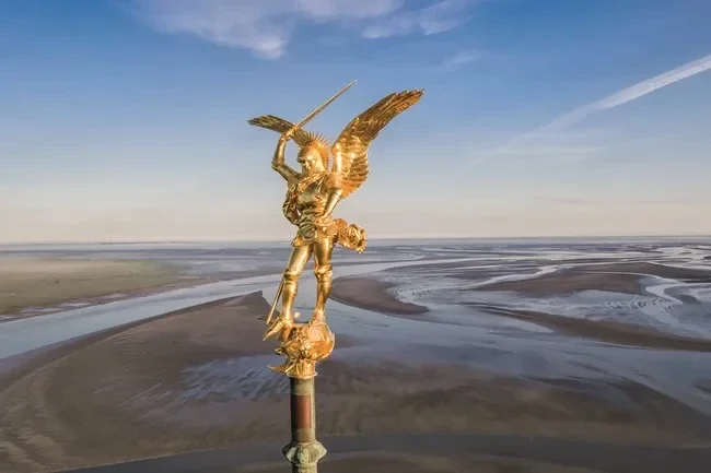 "Sveti Mihael je jednog dana pozvan da se bori protiv demona koji se, kako bi se borio, pretvorio u strašnog zmaja. Bitka je započela na planini Dol u Bretanji. Sotona, uz pomoć svojih zlih hordi, žestoko se borio. Borba sa neizvjesnim ishodom se nastavila na nebu, nekoliko dana prije nego što je završila daleko od mjesta gdje je započela, na Mont Tombeu (Mont Saint-Michel)."