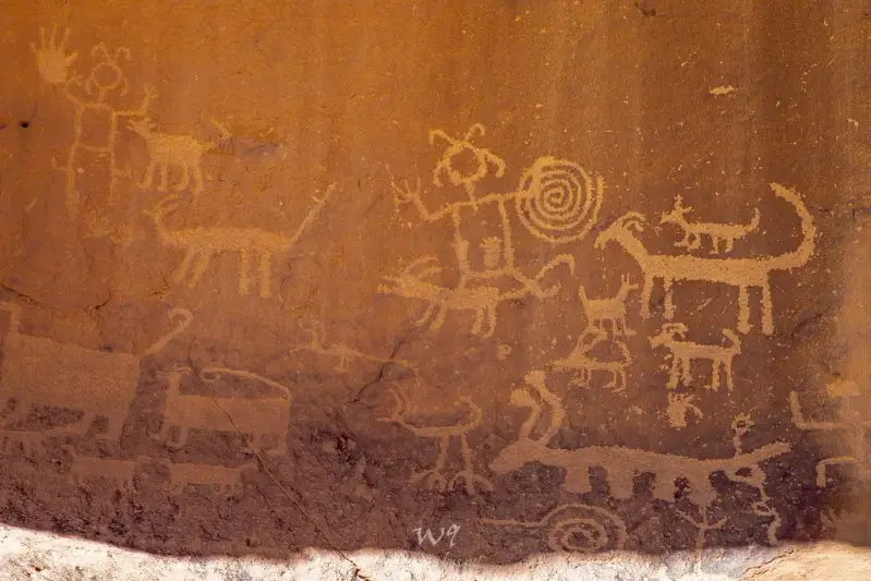Tu su i misteriozni otisci ruku, na crtežima koji prikazuju povijesne događaje, poput petroglifa iz kanjona Chaco koji kronološki opisuje rođenje Rakove maglice, 1054. godine. Astronomi procjenjuju da je eksplodirana supernova bila vidljiva Anasazijima usred bijela dana, tijekom puna dva mjeseca. Nebeska eksplozija zabilježena je u kanjonu Navajo i White Mesi, kao i u kanjonu Chaco, a nedavno otkriće čini se kao da ukazuje na to da je detaljno zabilježena i na Nacionalnom spomeniku Agua Fria, u udaljenom kanjonu u središnjoj Arizoni.