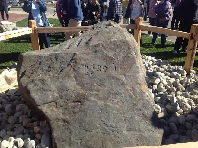 Runski kamen Kensington izložen u Trgovinskoj komori Aleksandrije, "Muzeju runskih kamenova", i Aleksandriji, Minnesota, Sjedinjene Američke Države