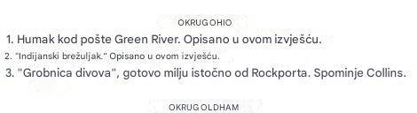 Postoji odjeljak pod nazivom "Okrug Ohio". U njemu su navedena samo tri arheološka otkrića, od kojih se nijedno ne podudara sa vijestima iz starih novina: