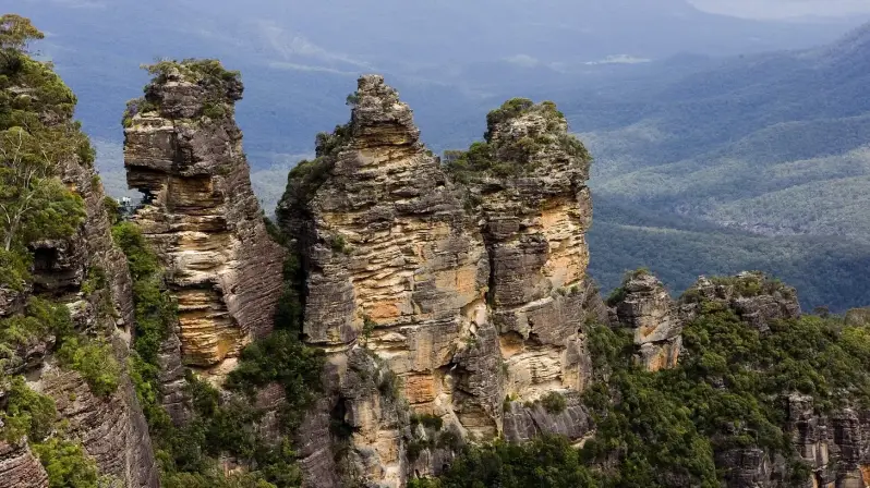 Tri sestre čuče na južnom rubu grada Katoombe, anglosaksonske enklave umjetnika i obrtnika. Mogu se vidjeti sa golf terena i najpoznatija su znamenitost u Gradu Plavih planina, kao i nizu susjednih gradova, koji leže na glavnoj zapadnoj željezničkoj pruzi Novog Južnog Walesa. Grad Plavih planina nazvao se "Gradom unutar nacionalnog parka svjetske baštine". Grad je pobratim sa gradovima Sanda Cityjem u Japanu i Flagstaffom u Arizoni.