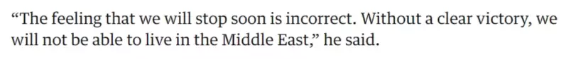 Zapravo, Izrael je sada povukao nekoliko svojih potučenih vrhunskih brigada iz Gaze—uključujući najelitnije Golanije—u svrhu njihove obnove zbog ozbiljnih gubitaka; barem tako neki vjeruju. Sve dok je davao izjavu kako će borbe vjerojatno trajati do 2025. godine.