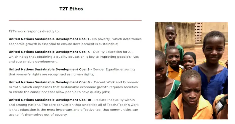 Usredotočena na Afriku, tvrdi kako želi "pomoći izvući djecu i mlade iz siromaštva, minimizirati rane i prisilne brakove, i pružiti mladim ljudima u najsiromašnijim područjima bitne vještine i optimizam za budućnost".