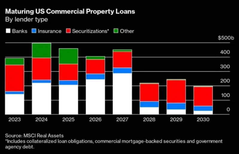 Samo je pitanje vremena kada će cijeli sustav implodirati. Uskoro će "500 do 1000 manjih banaka vjerojatno nestati zbog nesolventnosti ili konsolidacije", kaže Scott Rechler, izvršni direktor RXR-a. Kao što smo prethodno pokazali, velike banke su također de facto nesolventne, jer su njihove obveznice i zajmovi izgubili 50% svoje vrijednosti, a vrijednosti komercijalnih nekretnina su isparile. Svi su sada zamrznuti, kao jeleni u svjetlima farova, ali samo je pitanje vremena kada će začarani krug prodaje uništiti cijeli sustav. Ovaj grafikon prikazuje dio slike: