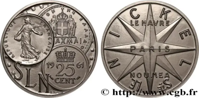 Ova medalja od nikla, koju je izdao SLN 1960-ih, sadrži slike francuskih, nizozemskih i grčkih kovanica s jedne strane, te logotip tvrtke s druge strane: