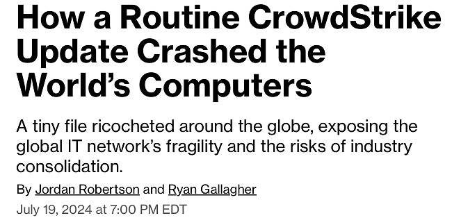 Jučer su mediji naširoko opisali pogrešku CrowdStrikea kao "povijesni globalni prekid rada", kao najveći i najdestruktivniji računalni bug u povijesti. CrowdStrike je pečen. Mnogi članci izvještavaju kako se mnoge tvrtke još uvijek nisu oporavile, postavljajući vrlo neugodno pitanje - da li je taj CrowdStrikeov antivirusni lijek gori od nekakve virusne bolesti?!